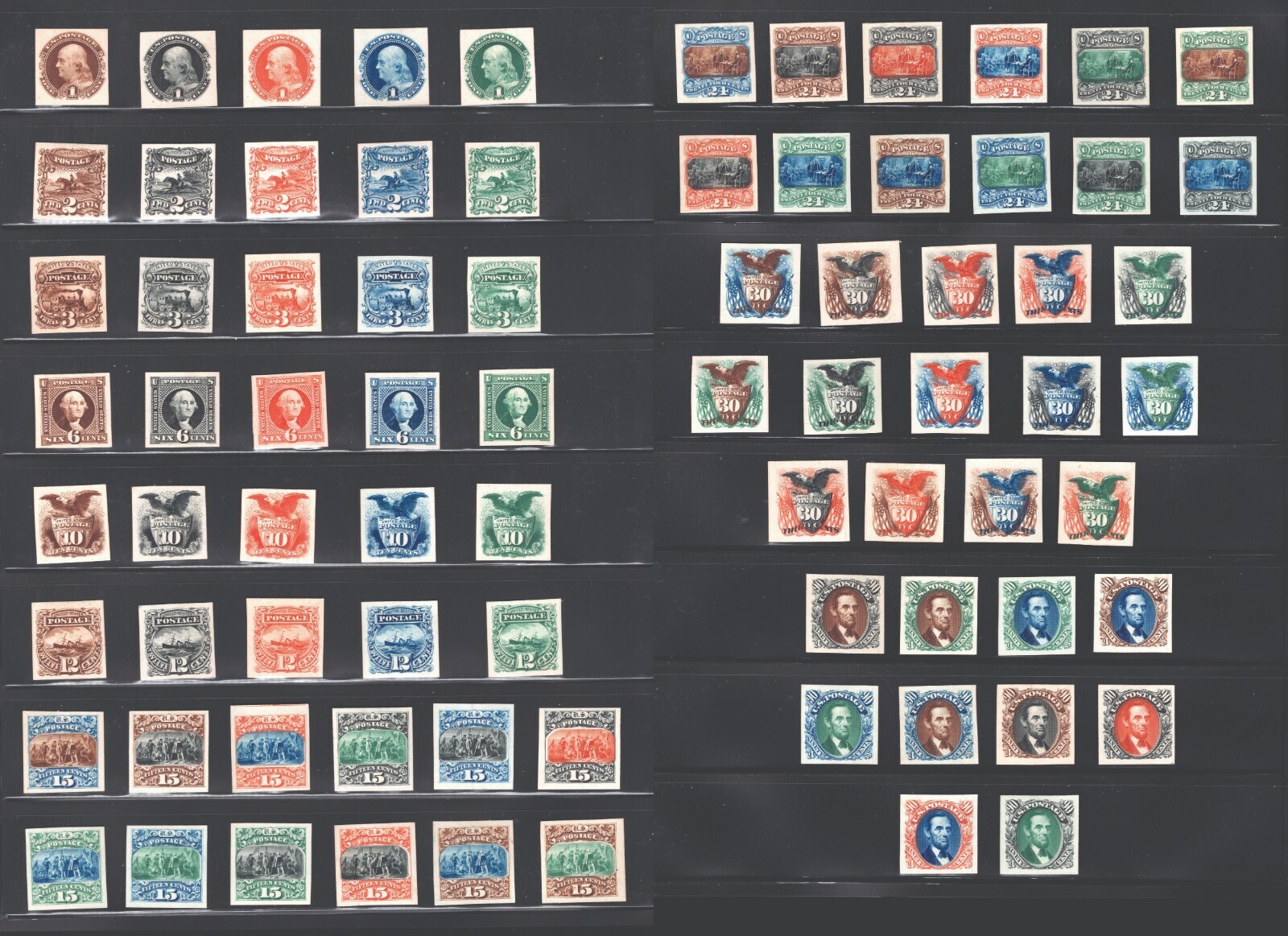 Condition: A RARE SET OF THE BICOLORED ATLANTA TRIAL COLOR PROOFS OF THE 1869 PICTORIAL ISSUE.The Atlanta … Read more about the seller notes A RARE SET OF THE BICOLORED ATLANTA TRIAL COLOR PROOFS OF THE 1869 PICTO …
