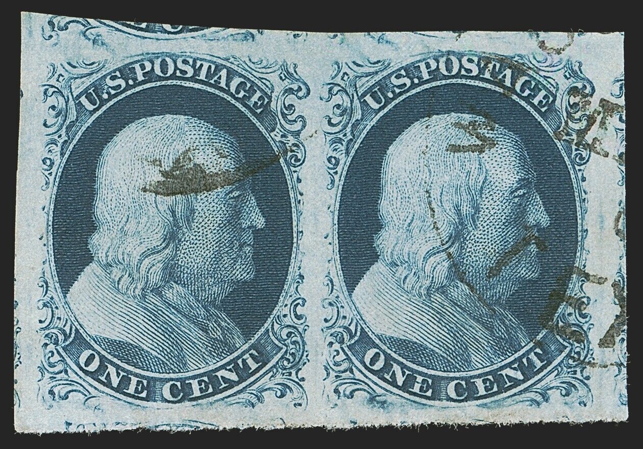 Condition: horizontal pair, huge margins all around including part of six adjoining stamps, deep rich color … Read more about the seller notes horizontal pair, huge margins all around including part of six adjoini …